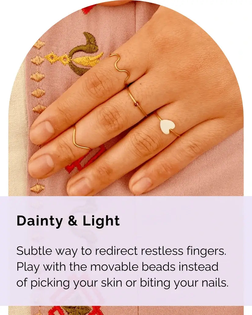 Mit einem Anxiety Ring hast du ein diskretes Werkzeug für sensorische Reize. Durch das Spielen mit den Perlen kannst du dich ablenken und auf eine körperliche Handlung konzentrieren.
